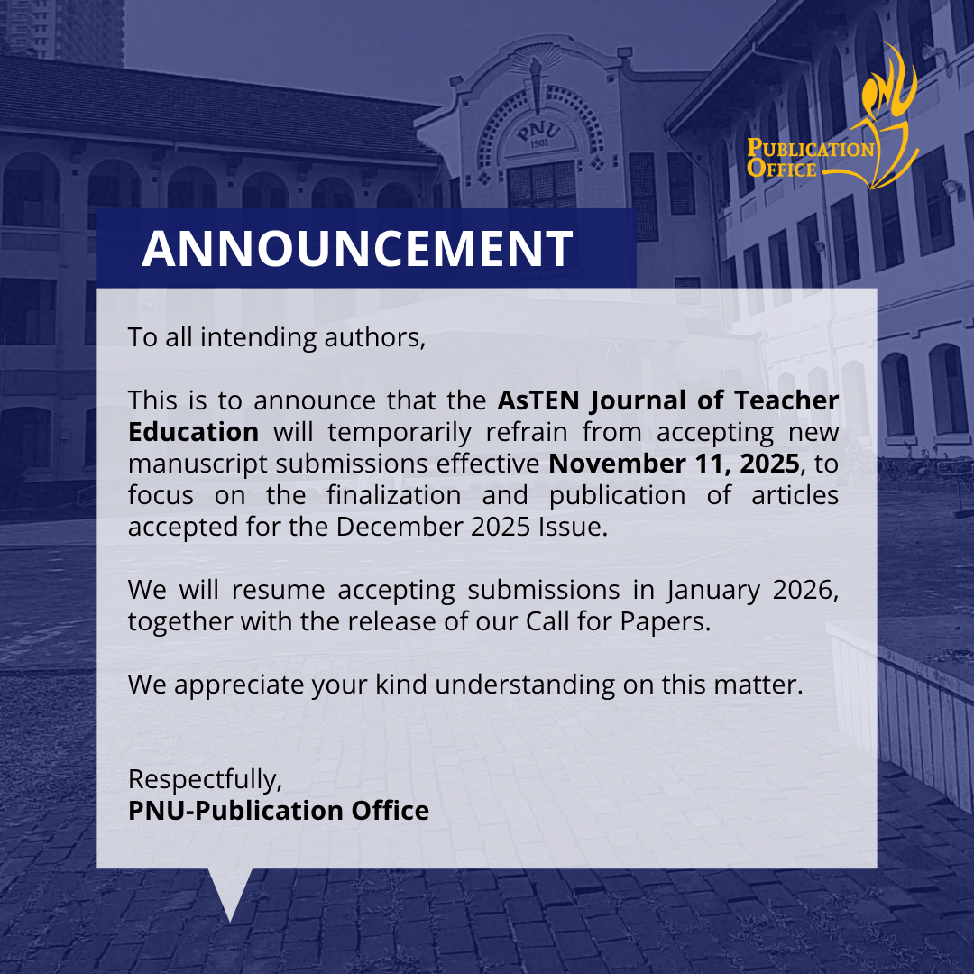 AsTEN Journal of Teacher Education Manuscript Submission Temporarily Closed Starting November 11, 2025